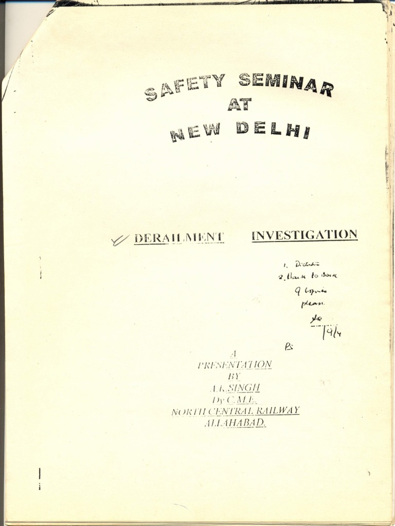 Derailment Investigation A Presenatation by MR A K Singh PDF
